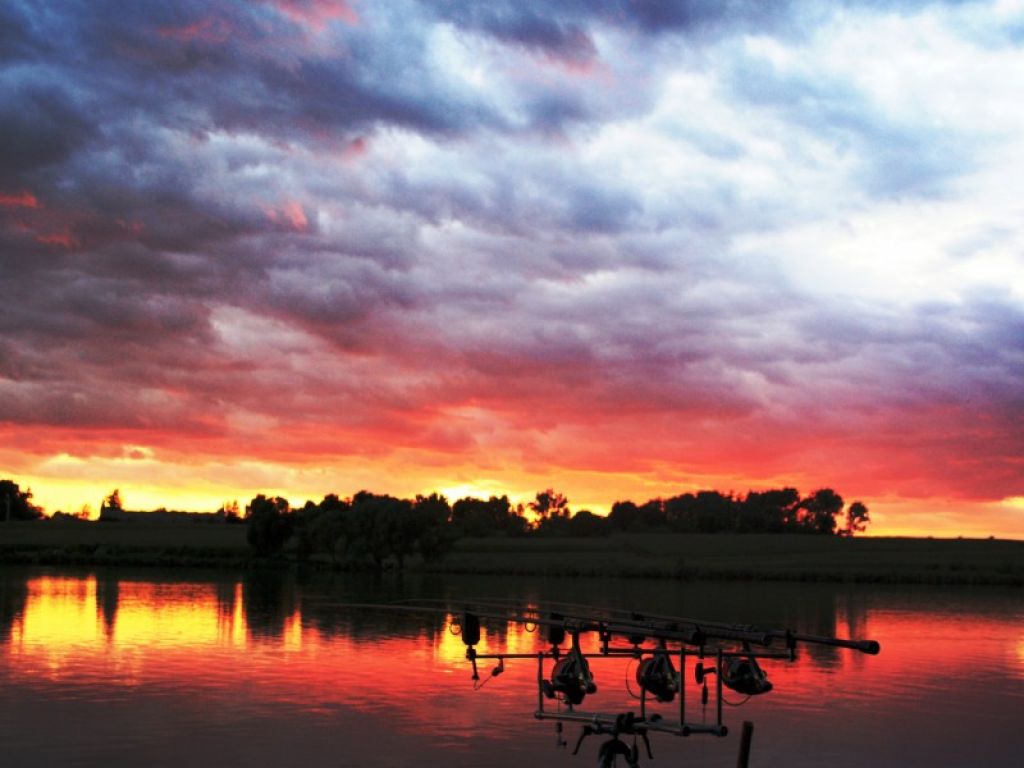 Byl jsem jako na trní. Uvařil jsem si kávu a čekal co se bude dít. Po půl hodině přišla první jízda zprava. A já si mohl vychutnávat souboj se svým prvním 8kg Maďarem. Záběrů začalo přibývat a já si to začal náramně užívat. Všechno to byly ryby do devíti kg. Velmi mě překvapila jejich síla a bojovnost. Odpoledne se zvednul silný studený vítr, který sebou přinesl vydatný déšť. Rapidně se ochladilo a mně přibyly vrásky na čele. Měl jsem obavy z toho, že se ryby stáhnou z mělčin do hloubky a budu bez záběrů. Zalezli jsme do bivaku a čekali až se to bláznivé počasí uklidní. Hodiny utíkaly jako o závod. Venku se začalo pomalu stmívat. Převést montáže v tom větru bylo téměř nemožné. Uklidňoval jsem se tím, že je to první den a všechno to doženu zítra. V úterý ráno se to na chvilku uklidnilo, ale bohužel né na dlouho. Převezl jsem všechny své montáže a to bylo v tento den poprvé a na posledy. Celé úterý jsme museli být zalezlí. I zimní kulich, kterého jsem při balení hodil do tašky, přišel vhod. Počasí se zhoršovalo čím dál tím víc. Kulminovalo to v úterý v noci. Všude kolem nás praskaly větve pod silou větru a bombardovaly provazy deště. Celou noc jsem se modlil a doufal, že se počasí do rána umoudří. Představa dalšího dne stráveného v bivaku byla opravdu frustrující. Ve středu ráno jsem se vyhrabal z pelechu i s kulichem na hlavě. Jediné co mě zajímalo, bylo počasí. Vítr foukal pořád, ale už ne tak silný a studený. I pršet přestávalo a místy začalo prosvítat slunce. Vyrazil jsem na vodu a začal dohánět to, co jsem za ty dva dny ztratil. První záběry na sebe nenechaly dlouho čekat a já byl opět ve svém živlu. V odpoledních hodinách se počasí umoudřilo natolik, že se rázem oteplilo na 24 stupňů a vítr nefoukal žádný. Poprvé jsem si mohl vychutnávat pohled na klidnou hladinu při zapadajícím slunci, která nabízela nespočetné množství krásných výskoků od ryb. Něco podobného jsem hodně dlouho nezažil. Byla to nádhera, kterou mám stále před očima. To je to, co na rybařině tolik miluji a nemusí jít při tom o samotný lov. Jen sedět, koukat celé hodiny do vody a vnímat přírodu je pro mě hnacím motorem do života.