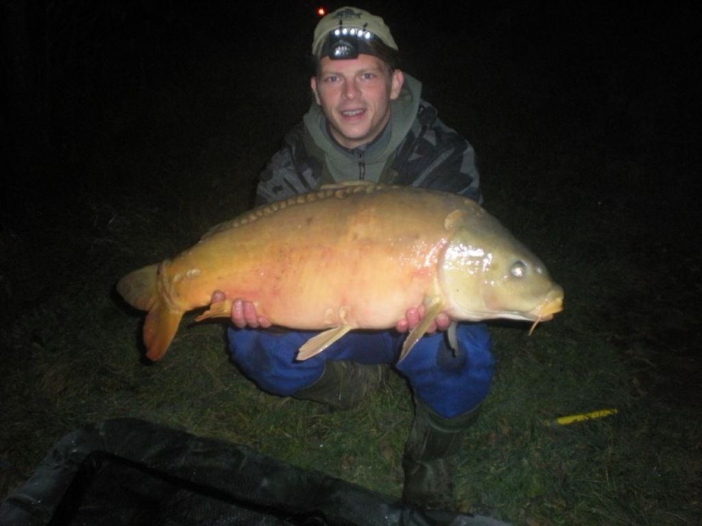 Předpověď se vyplňuje. Teploměr v autě ukazuje -4°C a ani rozdělaný oheň nestačí zahřát naše zmrzlé nohy. Startuji auto a topím, co to dá. Po vytopení uléháme do vymrzlých kovových postelí. Ve tři ráno opět záběr a opět padá můj pohled na pravý prut s koulemi od Václavíka. Sekám a ryba jede hned od břehu, opírá se do prutu slušně. Po deseti minutách ji dostávám pod nohy a s Jardou vidíme, že jde o krásného kapra. Jarda strká podběrák do vody, ale kapr jako kdyby tušil, že on je ta věc, co do té sítě má přijít, předvádí neuvěřitelný výpad a dostává se zase zpátky na vodu zhruba na 15 metrů od nás. Chvíli se přetahujeme o každý metr, ale nakonec jsem vítězem já. Jarda už bez problémů kapra podebírá a po zvážení a změření víme, že jde o krásného zdravého kapra o váze necelých 11 kg a délce 79 cm. Do rána se už nic nestalo, záběry přestaly přicházet, tak jsme se alespoň krásně vyspali. Dopoledne jsme vše sbalili a došli k názoru, že Casia na této vodě byla něco jako malý zázrak. Jardovy pelety, které tu byly vždy top nástrahou, Jardovi přinesly jeden záběr, který se bohužel nepodařilo proměnit ve zdolání ryby. Byla to nejspíše naše poslední jednodenní výprava a jsme rádi za dvě ryby, které bychom asi bez pomoci boiliesu Casia neměli.