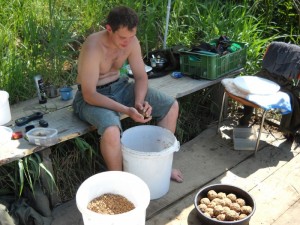 Místo jsme měli vylosované předem, takže jsme věděli, co nás čeká. Po podrobném ohledání dna jsme zvolili hloubku 2,3 m s jemně bahnitým dnem. Podle našich zkušeností jsme zvolili vzdálenost cca 70 m, abychom neměli problém s dohozením i za silného větru. Před začátkem závodu jsme měli vše připraveno včetně slepených koulí, které obsahovaly vařenou kukuřici, řepku, pstruží granule a pelety od firmy Carp Zoom Bloody Halibut 12 mm.