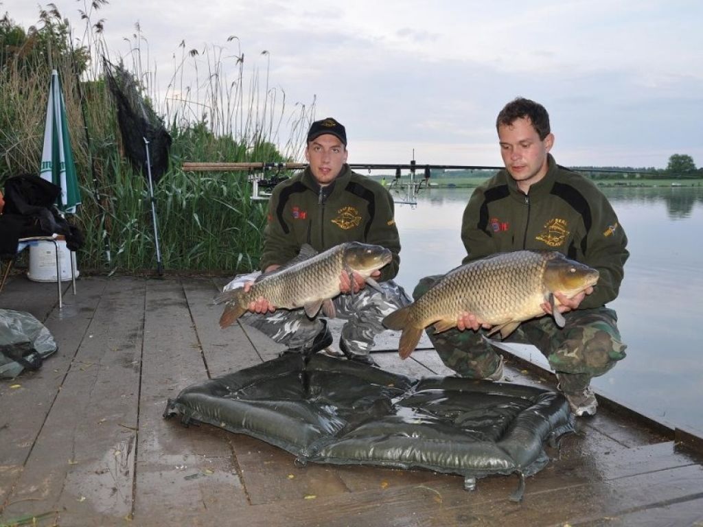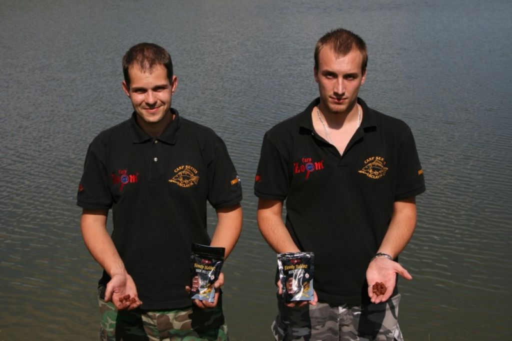 Během prvních několika hodin jsme byli znepokojeni přímým sluncem a vysokou teplotou, která měla za následek stažení kaprů do mělké vody o hloubce 1 m. K večeru se ryby stahovali do větší hloubky a začali se objevovat záběry. Prvním kaprem byl krásný šupináč, 85 cm o váze 12,8 kg , kterému zachutnali pelety Bloody Halibut . Hned v zápětí jsme měli sérii záběrů, které byli pouze na pelety Bloody Halibut 12 mm a zúžili nám výběr nástrah na jednu jedinou a tak nám pomohli dohnat ostatní závodníky, ale objevil se problém s nekvalitním zaseknutím ryby a následním vyříznutím po 10 m zdolávání. Proto jsme začali měnit návazce z různých materiálů, ale situace byla stále stejná. Během nočního lovu a zoufalství jsme dostali spásnou myšlenku a návazec jsme prodloužily ze stávajících 25 cm na 32 cm a odstraněním rovnátka. Hned v zápětí se dostavila další série záběrů, kterou jsme vždy proměnili ve zdolanou rybu.